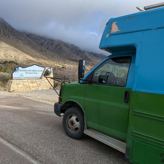 The drive up to the Guadalupe Mountains National Park was intense. The wind was so strong that I had to grip the wheel with both hands and brace whenever a tractor-trailer passed. The bus doesn’t love crosswinds, and neither do I.