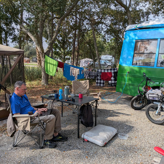 Three nights without moving the bus. Gulf Shores made it easy to enjoy my bike with miles of beautifully paved bike trails. We biked from campground to beach, post office to grocery store, brewery to dinner, without ever turning the key. It's nice to find our rhythm on the bus again. Gulf Shores State Park was a perfect place to do our laundry and some deep cleaning. We'll continue heading West from here, next up, Mississippi!